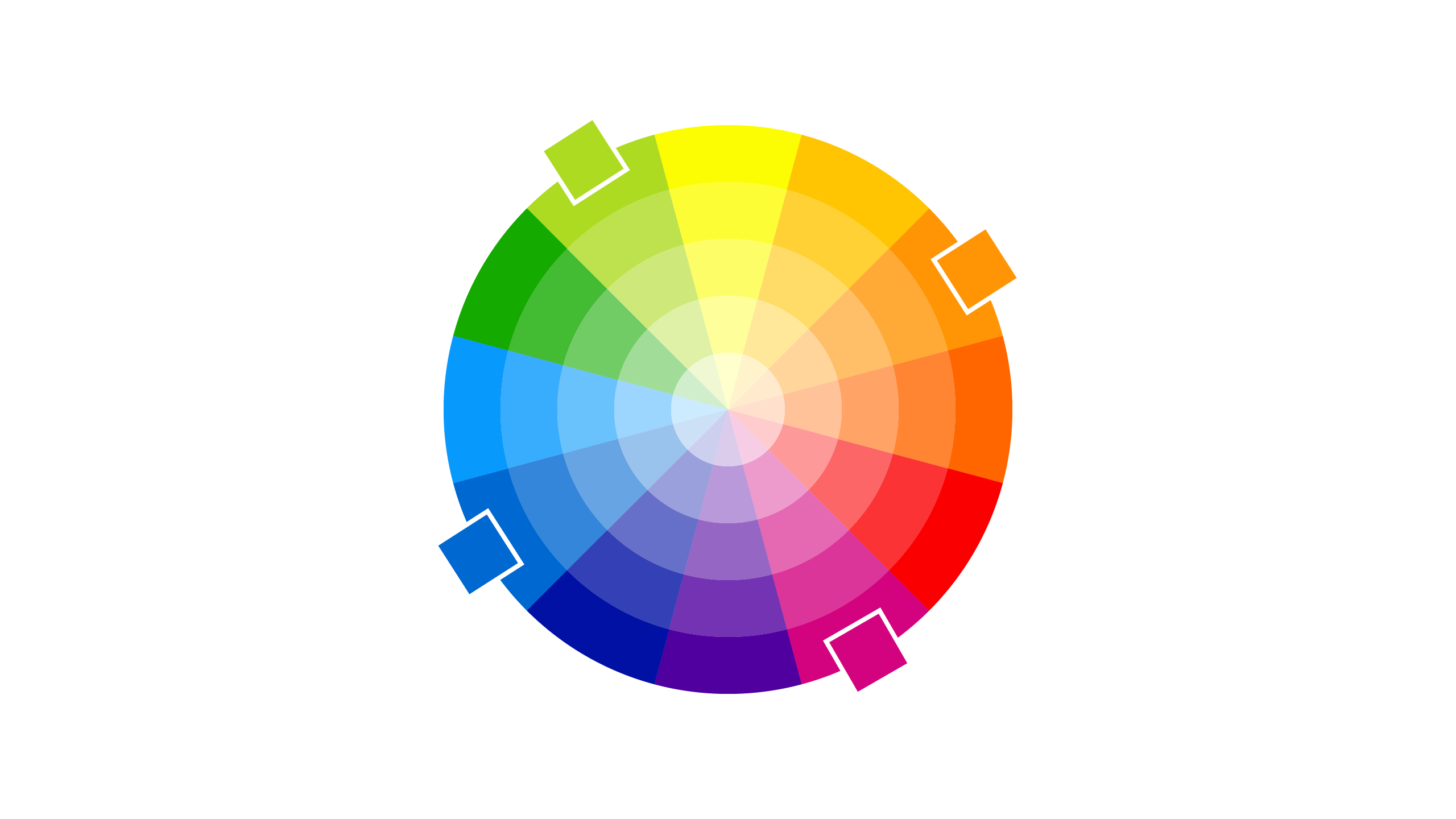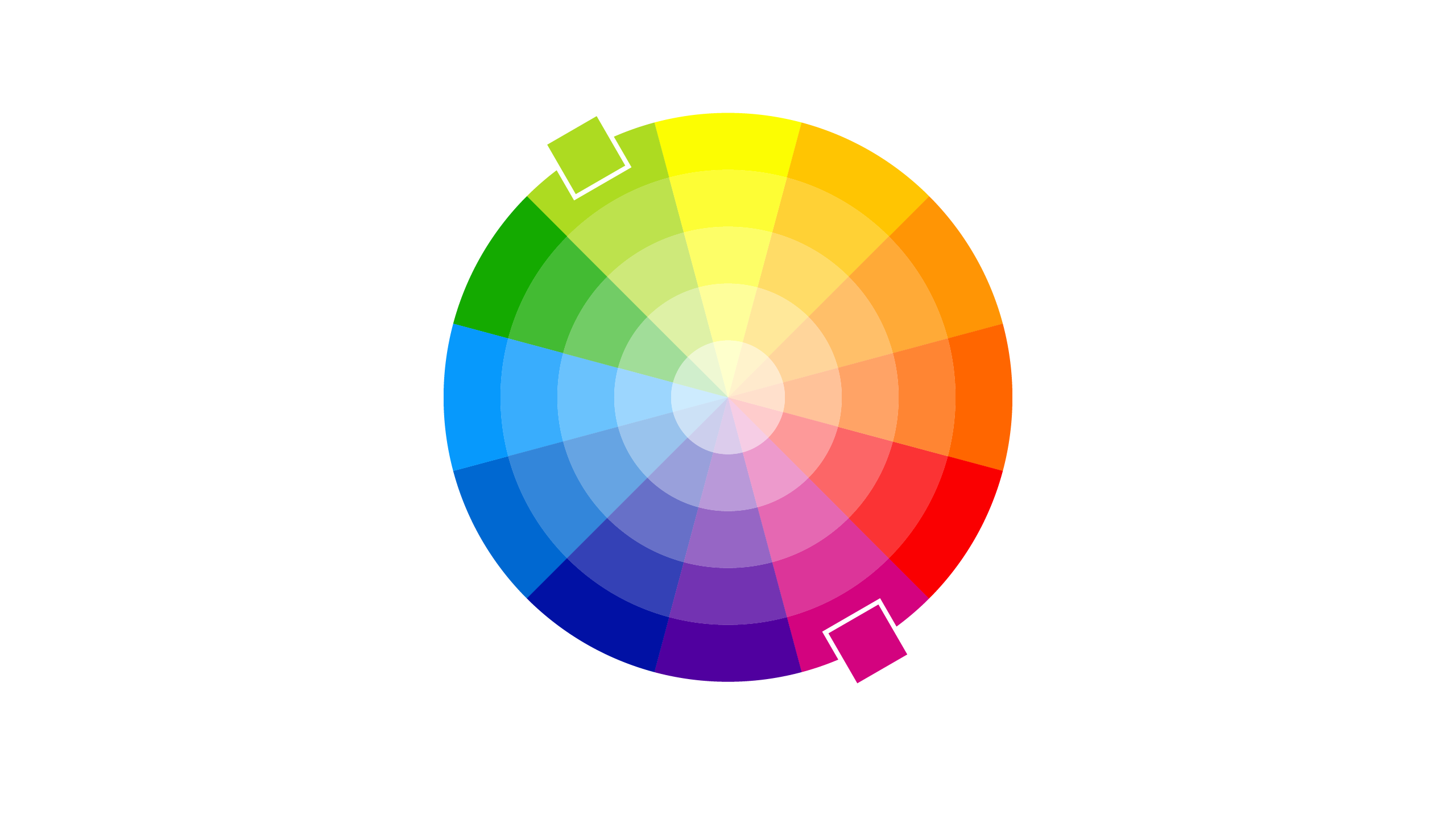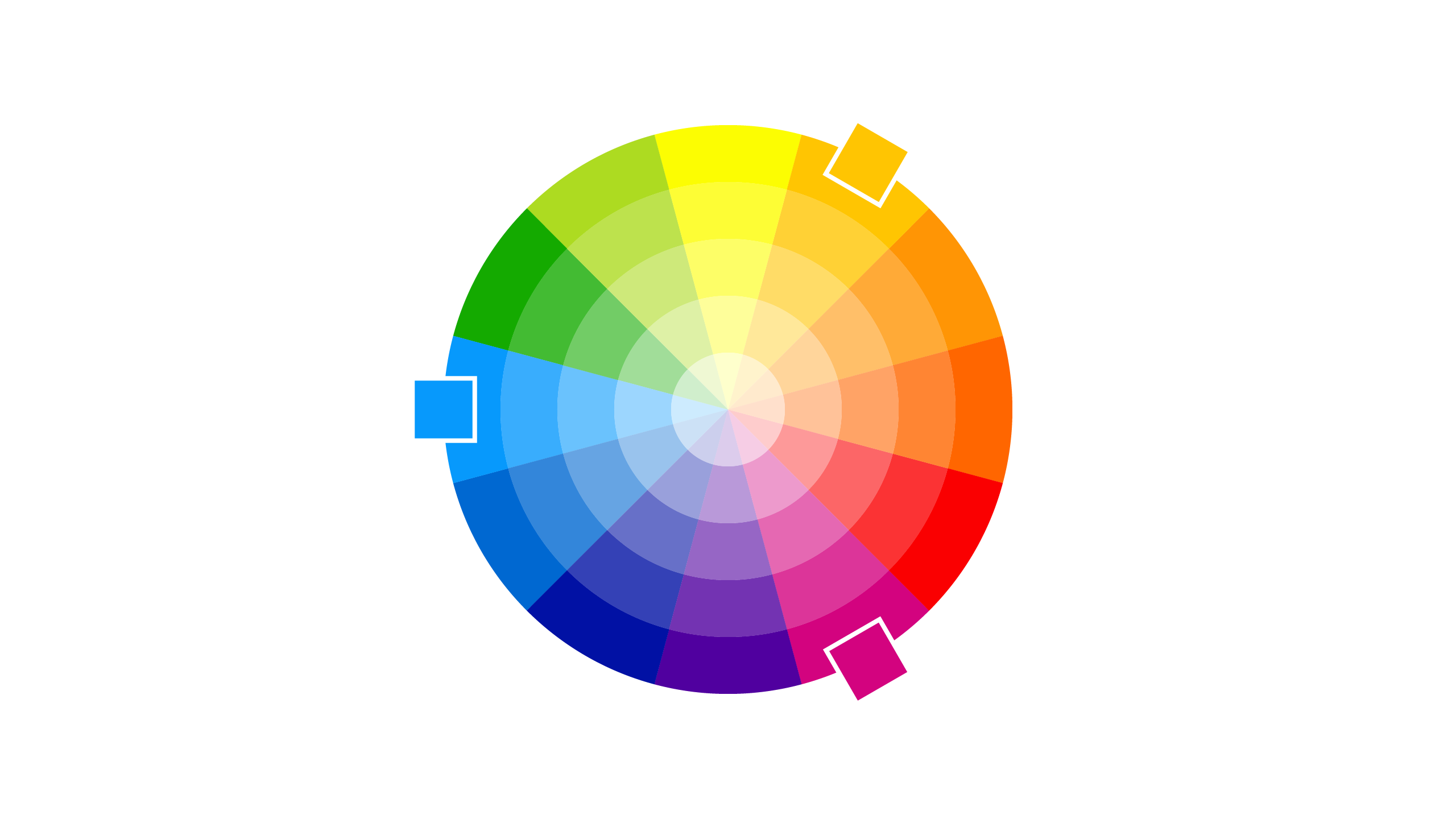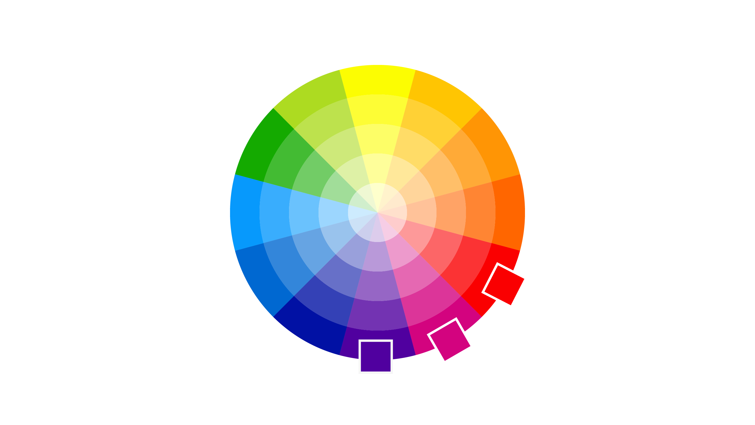 Una vez que tengamos nuestros colores primarios, podemos empezar a generar los secundarios utilizando combinaciones del círculo cromático. El círculo cromático es una representación visual de los colores organizados de manera que muestran sus relaciones entre sí. Se basa en la teoría del color y es una herramienta fundamental en diseño, arte y branding.